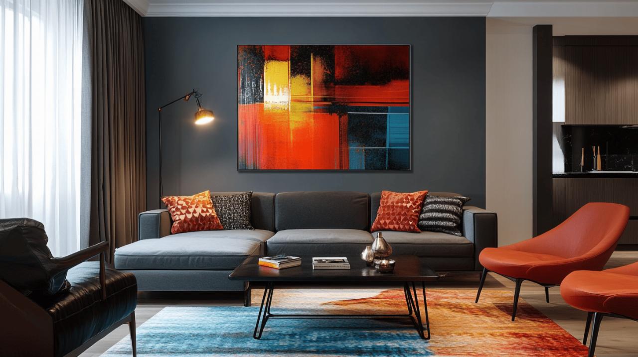 Pour un impact visuel maximal, envisagez de créer une véritable composition avec plusieurs tableaux. Les configurations symétriques apportent ordre et harmonie, tandis que les arrangements asymétriques offrent dynamisme et originalité. Si vous optez pour un ensemble de tableaux, maintenez une cohérence visuelle à travers un thème commun, une palette de couleurs similaire ou un style d’encadrement uniforme. Les espaces entre les tableaux doivent être réguliers, généralement entre 3 et 5 cm pour une composition serrée ou plus espacés pour un effet aéré. Avant de percer vos murs, simulez l’arrangement en disposant vos cadres au sol ou utilisez du papier kraft découpé aux dimensions exactes pour visualiser l’effet sur votre mur et ajuster si nécessaire.